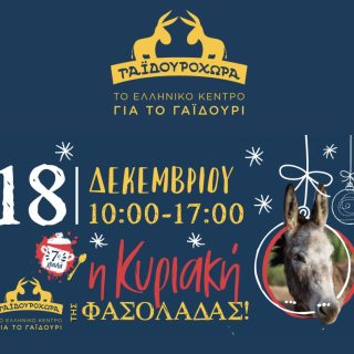 Το Ελληνικό Κέντρο για το γαϊδούρι περιθάλπει και φροντίζει ταλαιπωρημένα γαϊδουράκια. Για να μπορέσει να στηρίξει τις δράσεις του διοργανώνει εκδηλώσεις. Την Κυριακή 18 Δεκεμβρίου, 10πμ-5μμ, έχει την «Κυριακή της φασολάδας». Φασολάδα, άλλα φαγητά,...